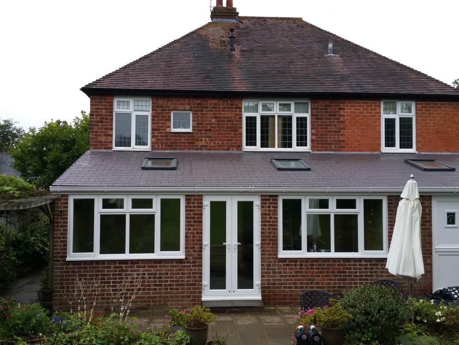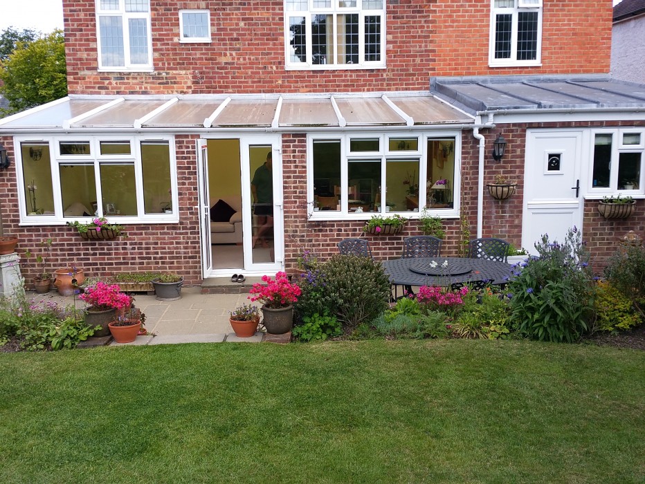 We were contacted by a client whose tired Polycarbonate Roof was no longer fulfilling the homeowners requirements. The room was too cold in Winter, too hot in Summer, and noisy when it rained. We took our customer through their various options to upgrade their now outdated roof - there are now more polycarbonate options; different colours for different benefits, and heatguard options to help control the internal temperature. The customer could also upgrade to a glass roof as there are now so many fantastic glazing options on the market, with Solar controlled and self cleaning glass available, again in varying colours, a huge difference can be made to heat loss in the winter, heat gain in the summer, and the glare of the sun. Also available of course, is the option of upgrading the roof to a solid or warm roof. With a replacement warm roof option, the ceiling is fully insulated and blocks out the glare of the sun, which means that the extra space can be used all year round for any activities. The customer decided to go ahead with a replacement warm roof, with this slate grey tiled effect roof. Roof lights have been added to ensure not too much light is lost, and lighting installed into the newly insulated and plastered ceiling. Needless to say, the customer was thrilled with the finished product. Not only was the space far more versatile and usable all year round, it was also far more efficient to heat in winter. But naturally, with any work taking place on your home, the finished look of the property is of highest importance. I think everyone will agree that upon viewing the before and after pictures of this property, there is no question that the aesthetics are far improved.